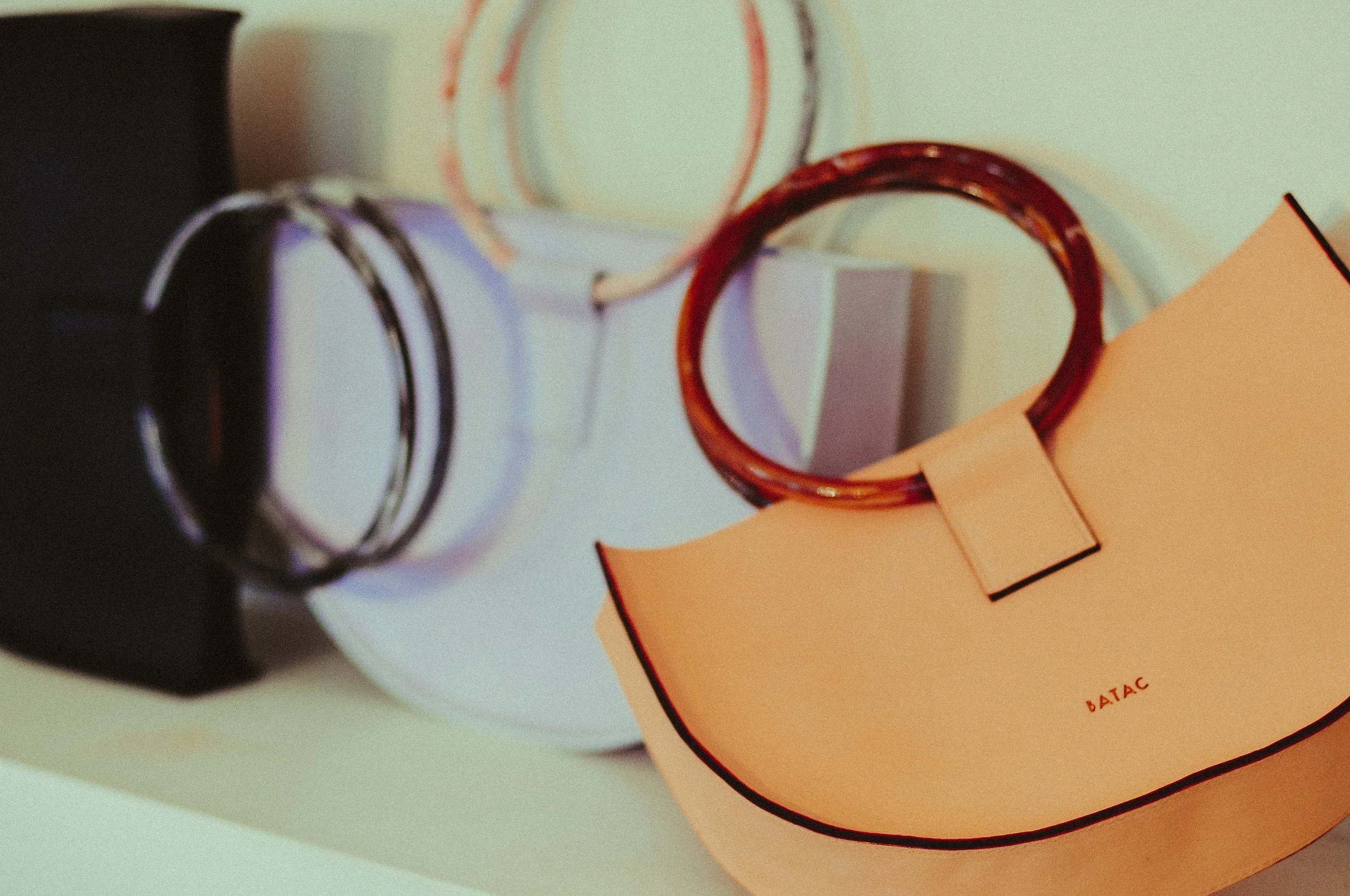 Handcrafted one by one in Barcelona, these geometric bags pair vintage lucite with luxe leather.